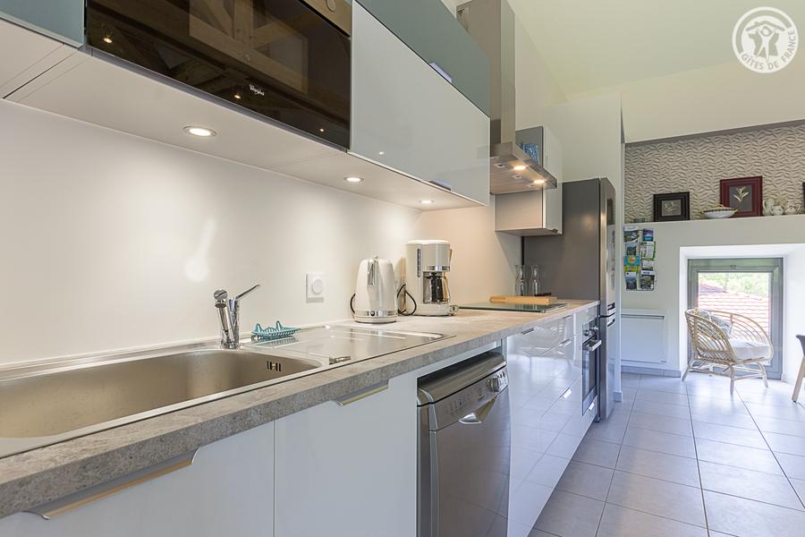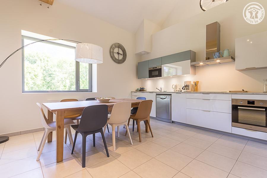 Ancienne cure du village transformée pour accueillir au rez-de-chaussée la bibliothèque du village et à l'étage un gîte confortablement aménagé pour 10 personnes. Agencement fonctionnel et décoration soignée conjuguant délicatement des pièces vintage avec du mobilier aux lignes contemporaines. Agréable luminosité dans la pièce de vie aux poutres apparentes. Gîte bénéficiant de la qualification Accueil Cyclos (espace de rangement et de nettoyage adapté aux cyclistes) et Gîte Pêche (possibilité de pratiquer la pêche à proximité, mise à disposition d'un frigo...). Gîte au 1er étage de l'ancienne cure du village. Accès par escalier extérieur. Stationnement public aux abords de la maison. Garage à vélo / cave sécurisée. Vaste pièce de vie (séjour-cuisine) avec plafond cathédrale. 1 dressing. 4 chambres (1 chambre 1 lit 2 personnes / 2 chambres 2 lits 90x200cm jumelables / 1 chambre 4 lits 1 personne superposés). 2 salles d'eau (douche) avec meuble lavabo double-vasque et sèche-serviette électrique. 2 WC indépendants. Draps inclus et lits faits à l'arrivée. Linge de toilette fourni. Connexion internet wifi. Lave-linge + sèche-linge.